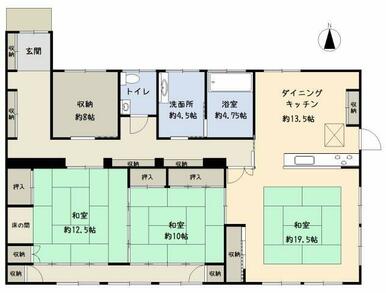 | 間取り(内訳) | 3LDK(和10、12.5、19.5) | 建物面積 | 182.07㎡ |