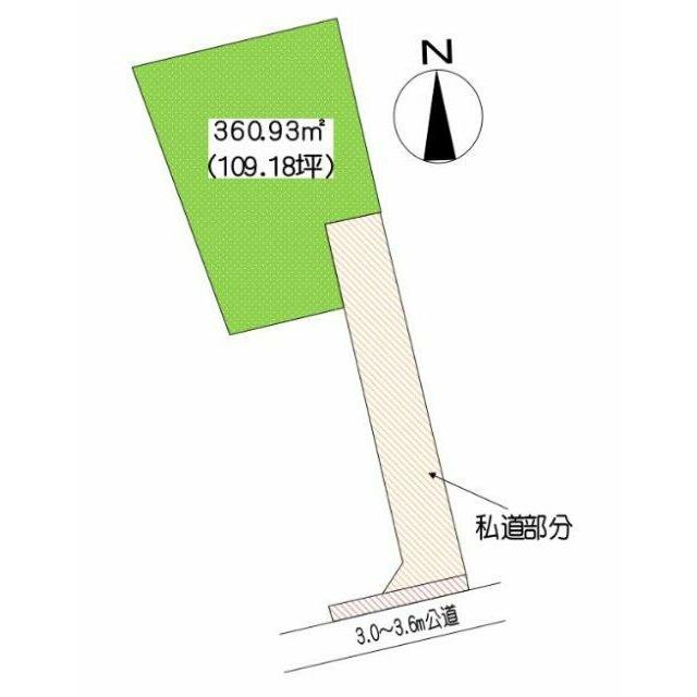 | 土地面積 | 公簿 360.93㎡ | 坪数 | 109.18坪 | 坪単価 | 4.95万円 |